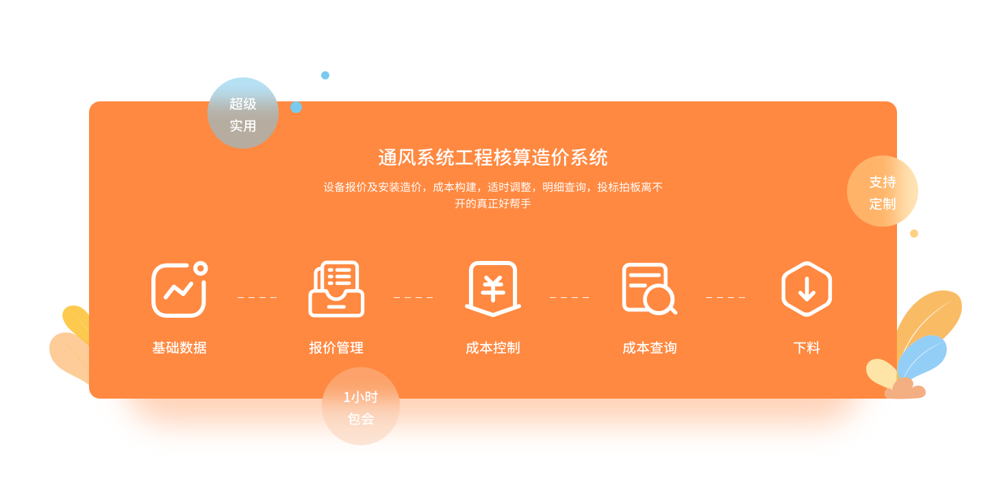 包括風(fēng)機閥風(fēng)口簡易報價、風(fēng)機閥風(fēng)口成本核算報價、通風(fēng)管道安裝成本核算報價、風(fēng)口噴塑計算報價、盤管柜機成本核算報價、組合式空調(diào)機組核算報價、表冷器成本核算報價等軟件。